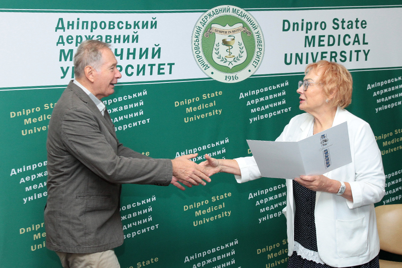 Засідання розпочалося з урочистого вручення грамот Дніпропетровської обласної ради з нагоди ювілею професорці В.В. Родіоновій та професору В.П. Кришеню. Грамотою облради нагороджена і професорка Т.В. Колесник, яка була присутня на засіданні в дистанційному форматі. Професорка Родіонова також була нагороджена Подякою ректора ДДМУ.