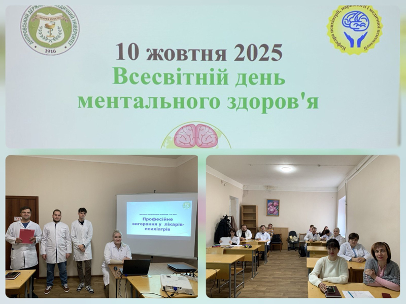 2 жовтня 2025 року у Дніпровському державному медичному університеті відбувся психоосвітній семінар для лікарів-інтернів першого року навчання зі спеціальності «Психіатрія» на тему «Професійне вигорання у працівників сфери охорони здоров’я: корекція та профілактика».