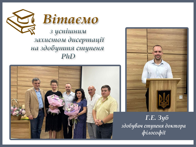 На підставі захисту дисертації спеціалізована вчена рада під головуванням професорки Олени Олександрівни Фастовець ухвалила присудити Глібу Едуардовичу Зубу ступінь доктора філософії. Спеціальність «Стоматологія», галузь знань «Охорона здоров’я».