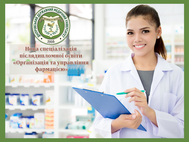 Дніпровський державний медичний університет радий повідомити, що на базі кафедри соціальної медицини, громадського здоров’я та управління охороною здоров’я, відкривається нова спеціалізація для фармацевтів «Організація та управління фармацією». Це унікальна можливість для фахівців у сфері фармації поглибити свої знання у сфері управління, менеджменту, логістики та організації аптечної діяльності.