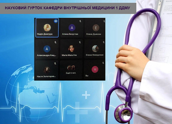 Студентський науковий гурток кафедри внутрішньої медицини 1 ДДМУ продовжує працювати у звичайному режимі. 29 березня 2022 року відбулося чергове онлайн-засідання, яке було присвячене сучасним методам дослідження в пульмонології. До зустрічі долучилися студенти 3, 4 та 6 курсів.