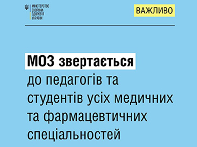 МОЗ закликає студентів усіх медичних та фармацевтичних спеціальностей, а також педагогічних працівників медичних вишів зробити свій внесок у перемогу над агресором.